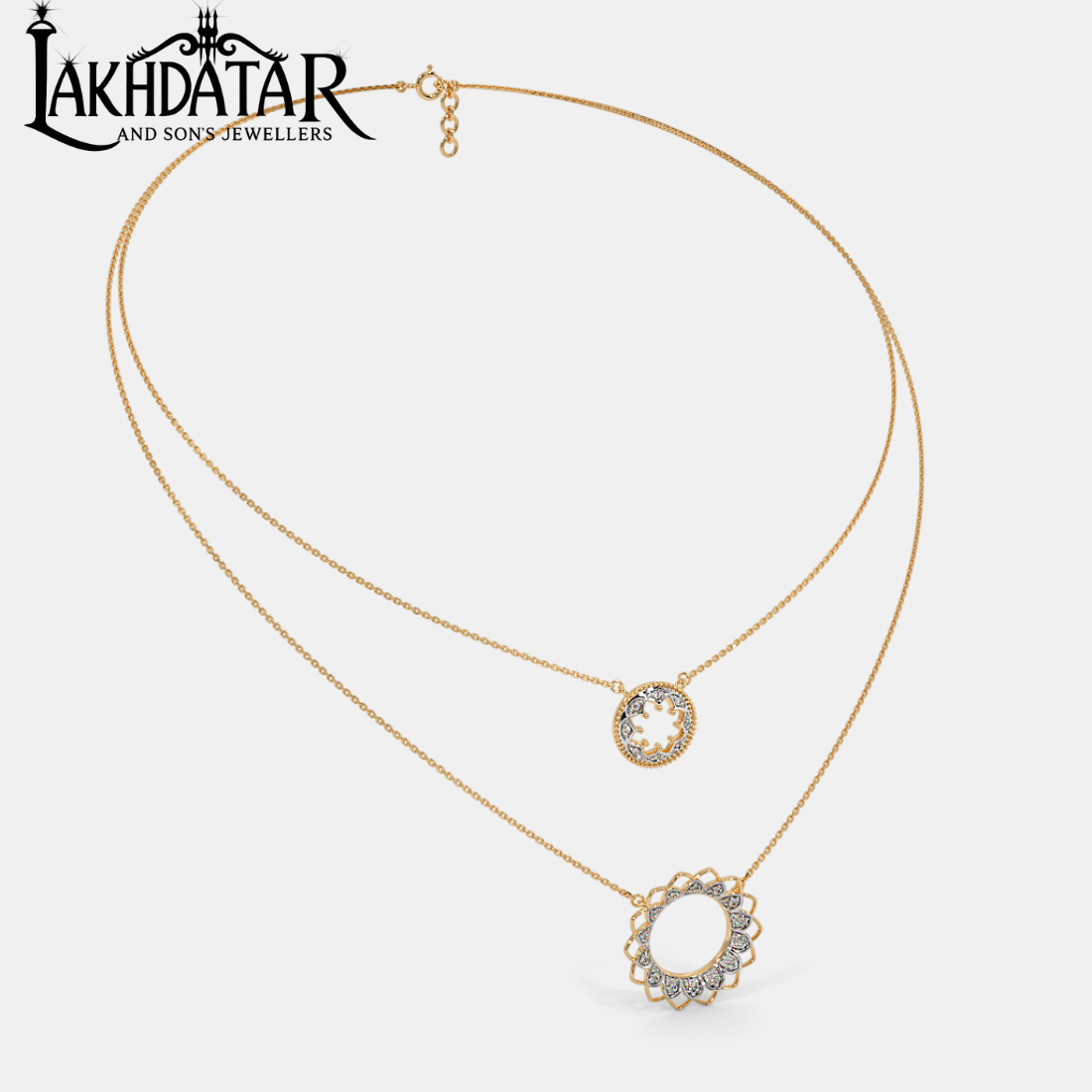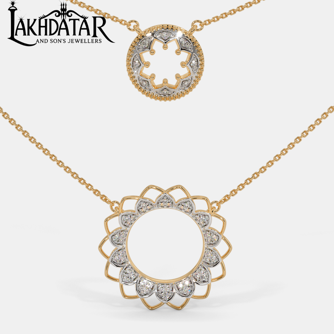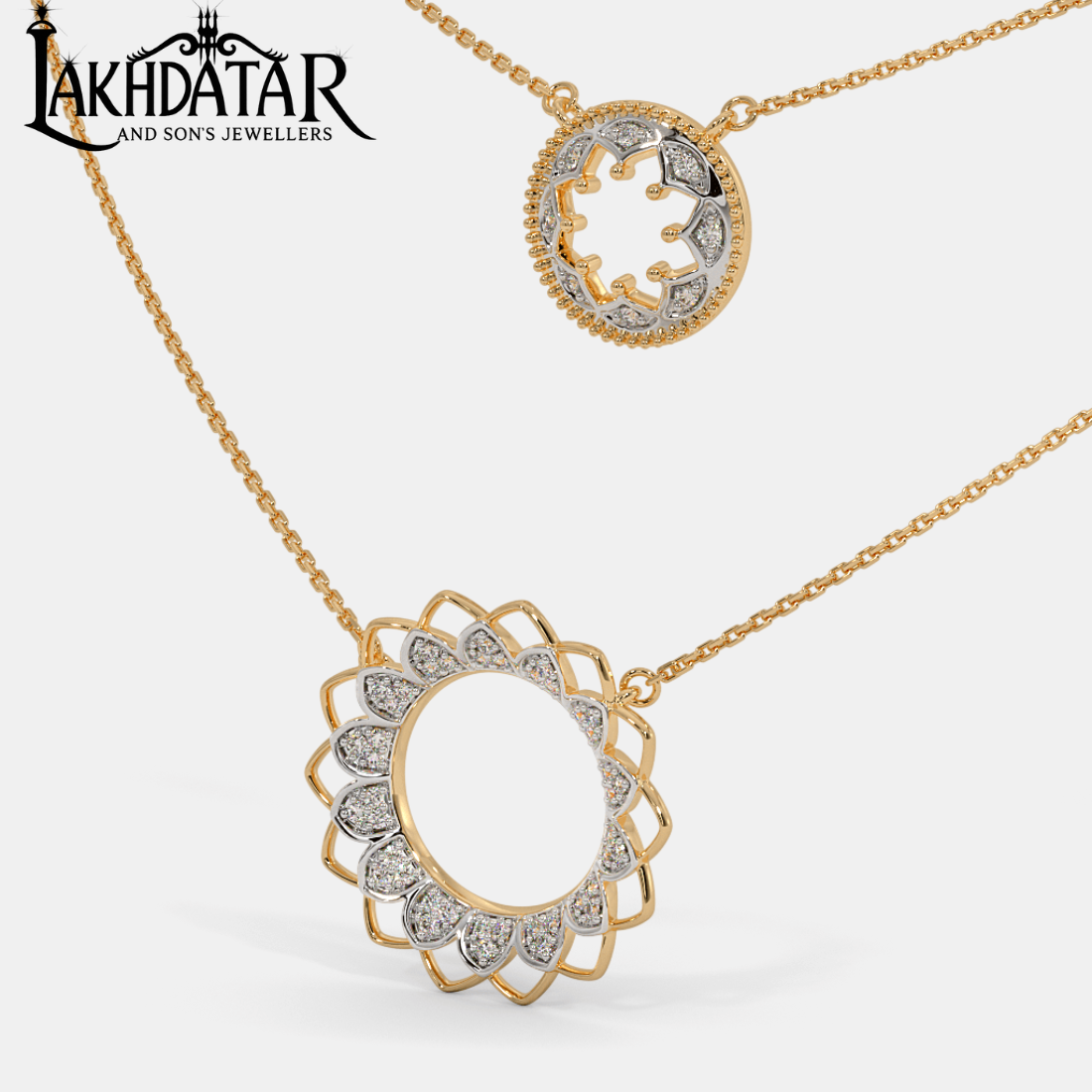 Radiating grace and luxury, this Circle Diamond Gold Necklace is a masterpiece crafted for women who adore elegance with a modern twist. The striking circle design, adorned with a sparkling diamond centerpiece, symbolizes eternal love, unity, and perfection. Meticulously crafted in lustrous gold, it seamlessly blends minimalism with sophistication, making it the perfect accessory for weddings, festive occasions, or everyday elegance. Its versatile charm allows it to complement both traditional attire and contemporary fashion. A must-have jewelry piece that redefines timeless beauty while adding a touch of brilliance to your collection.