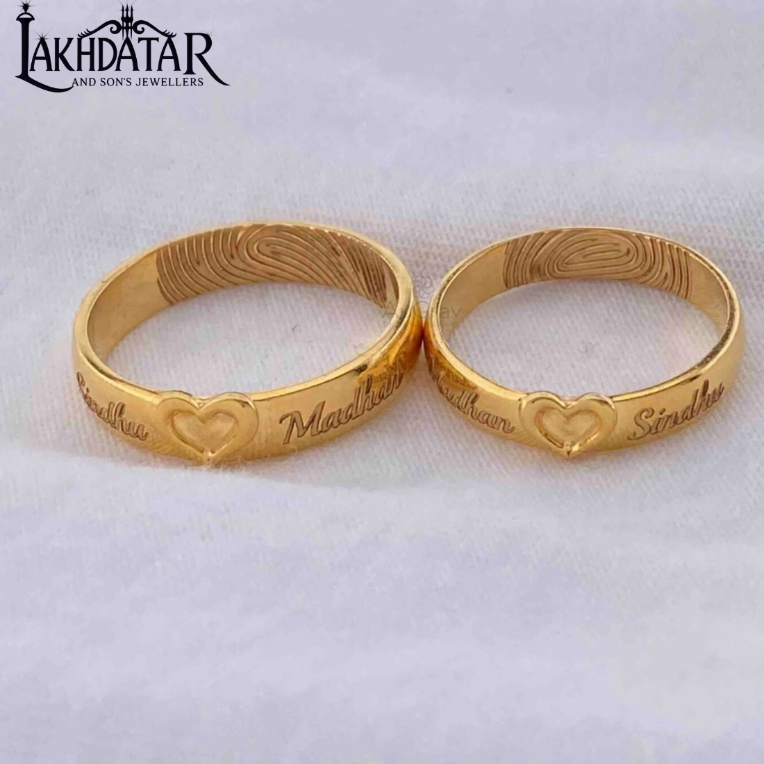 These classic, domed gold rings feature a timeless and elegant design, perfect for daily wear or as a cherished wedding band. The set includes a slightly wider band (typically for him) and a narrower band (for her), both crafted from high-quality polished gold .The interior of the rings features a charming, subtle engraving of a couple riding a bicycle, symbolizing a shared journey, companionship, and the adventures of marriage. This unique detail makes these rings a perfect token of your lasting commitment.